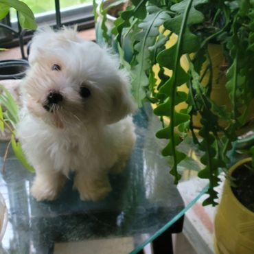 HES IS ONLY 1 week AND HES LOVING , SWEET AND ADVENTUROUS . lots OF LOVE HERE. THAT'S NO SMALL THING ! THIS MALE COTON DE TULEAR IS AN AMAZING LOVE BUG LOW SHED AND GREAT WITH KIDS and OTHER dogs .